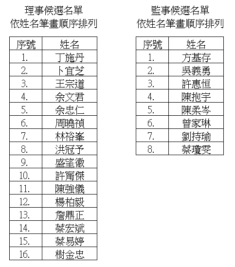 第四屆理事、監事改選─候選人名單